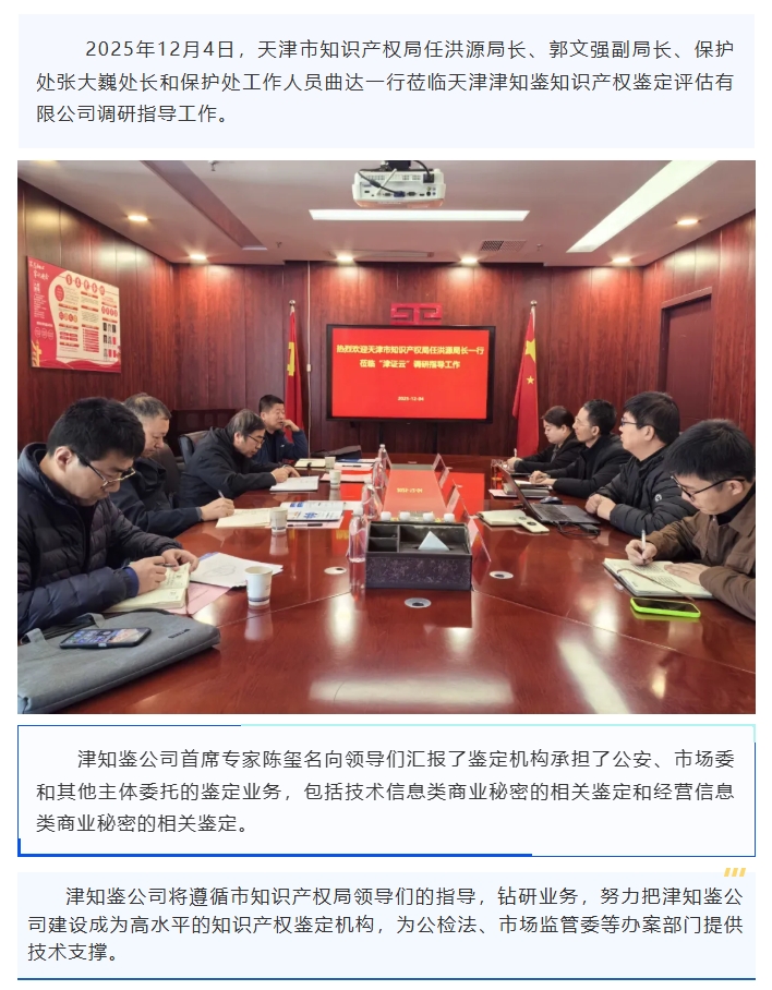 天津市知识产权局任洪源局长一行到津知鉴公司调研指导工作